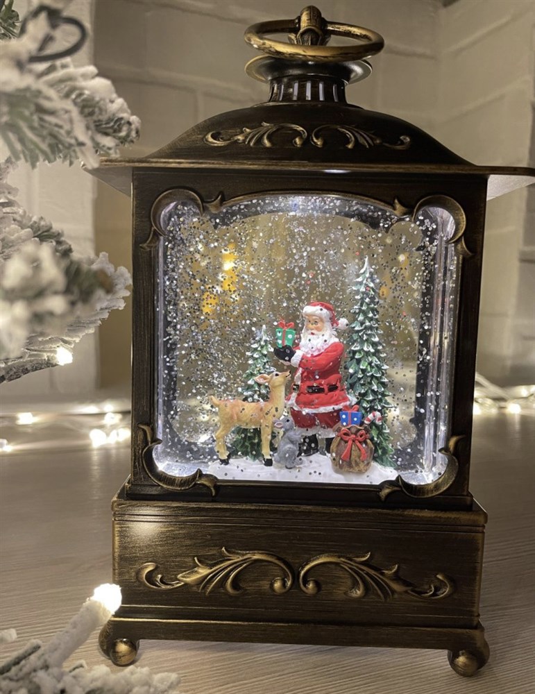 Фонарь музыкальный Новогодний с Дедом Морозом, ёлками и оленем