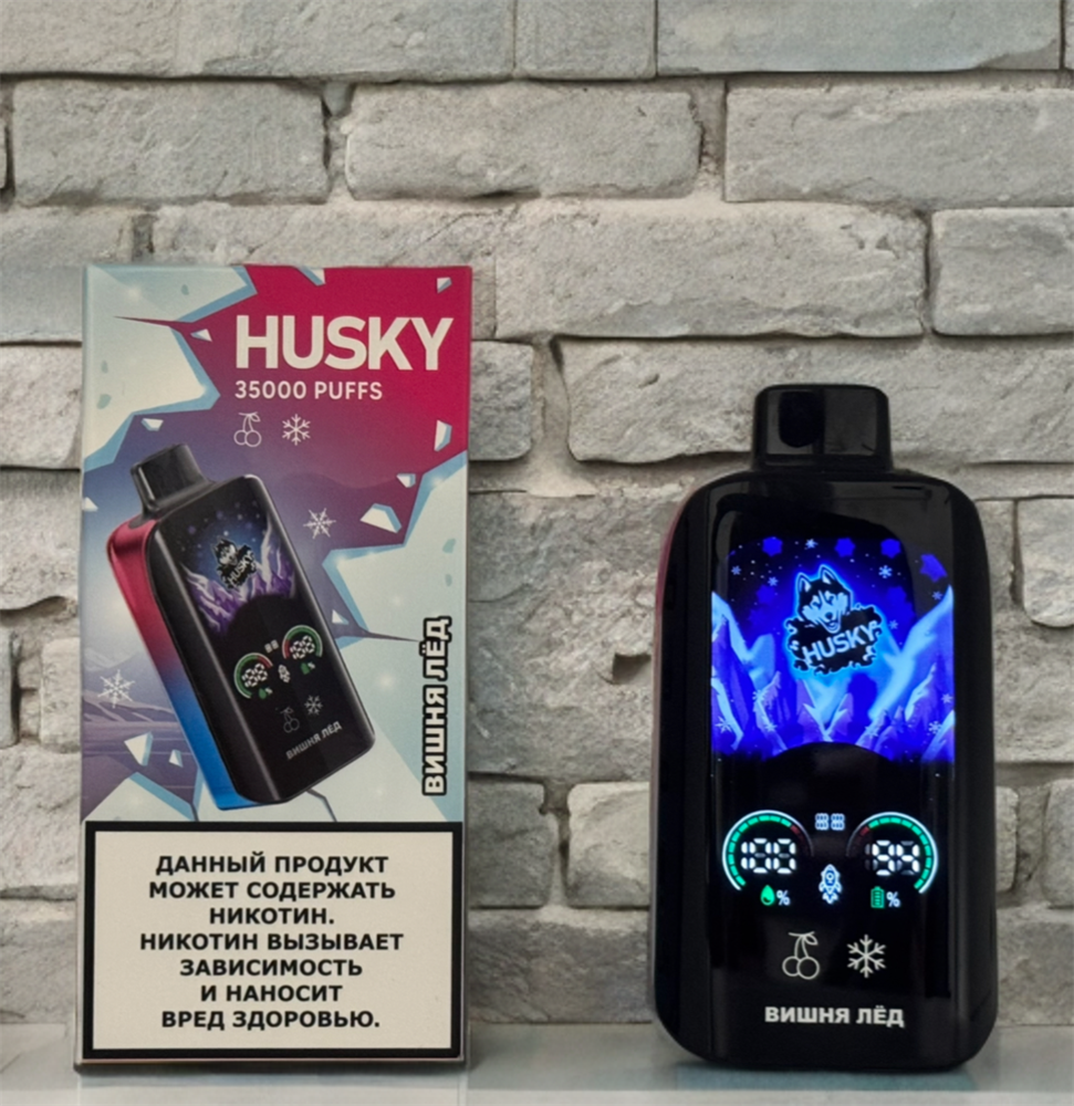 Купить одноразовые электронные сигареты Husky 35000 на 35000 затяжек с подзарядкой Type-C и индикаторами оставшегося заряда и оставшейся жидкости с доставкой или самовывозом из вейп шопов в Москве и доставкой по России.