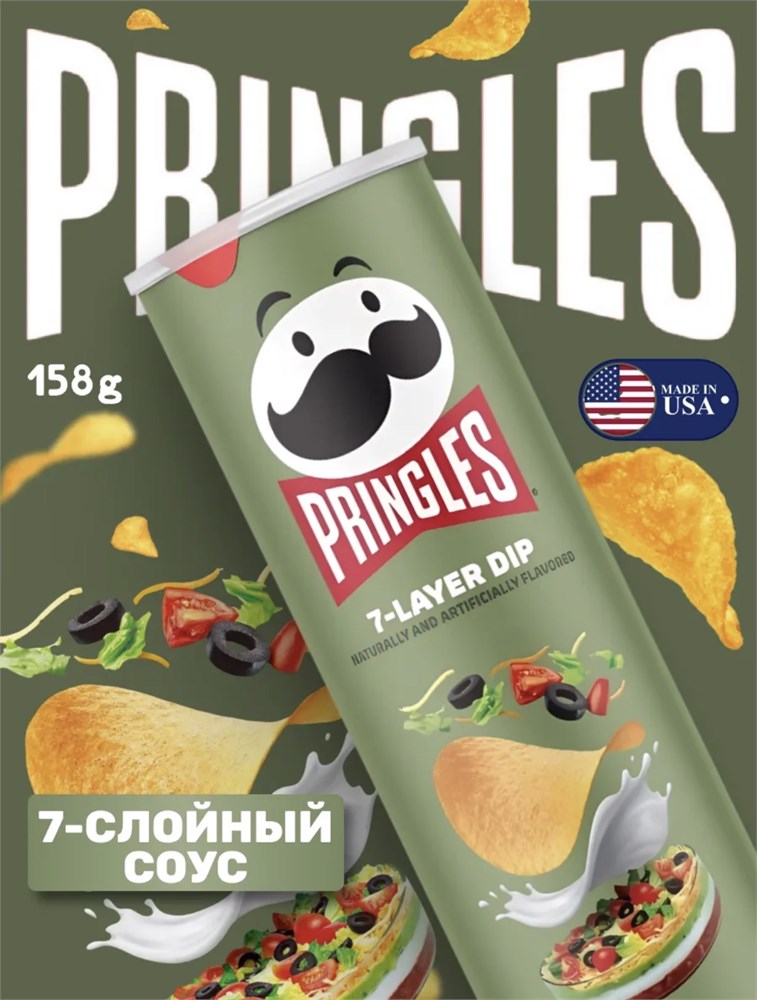 Картофельные чипсы Pringles 7-Layer Dip / Соус-7 слоев, 158 гр