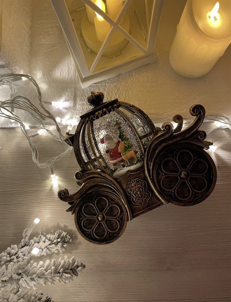 Колесница фонарь-светильник с Дедом Морозом и оленем