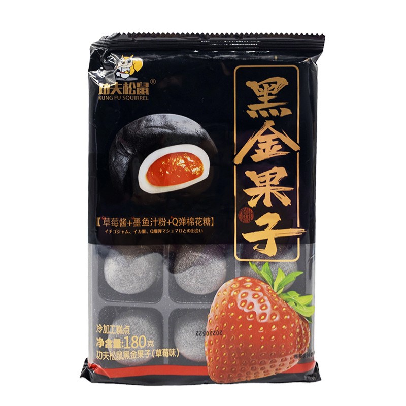 Состав: мальтозный сироп, крахмал, клубничный джем, клейкий рис, зефир, питьевая вода, белый сахар, порошок сока каракатицы (сок каракатицы, гуммиарабик, мальтодекстрин), гидрогенизированное кокосовое масло (содержащее сорбат калия), пищевые добавки (жидкий сорбит, альгинат натрия, моностеарат глицерина, DL-яблочная кислота, дегидроацетат натрия), пищевой ароматизатор.