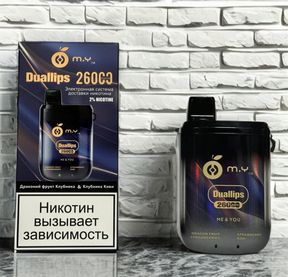 Купить одноразовые электронные сигареты MY Duallips 26000 на 26000 затяжек с 2 вкусами, подзарядкой Type-C с доставкой или самовывозом из вейп шопов в Москве и доставкой по России.