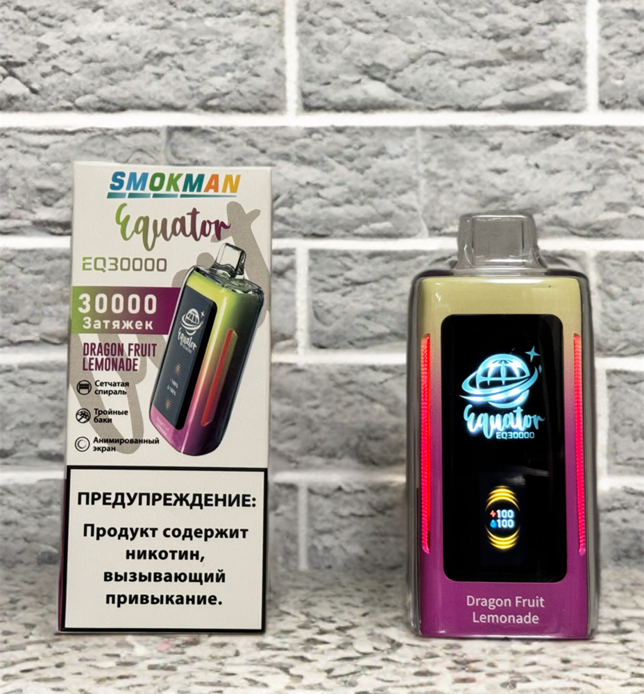 Купить одноразовые электронные сигареты Smokman Equator EQ 30000 на 30000 затяжек с подзарядкой Type-C и индикаторами оставшегося заряда и оставшейся жидкости, регулировкой тяги с доставкой или самовывозом из вейп шопов в Москве и доставкой по России.