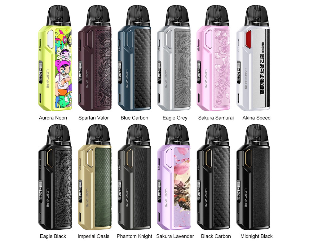 Thelema Elite DM45 выделяется на фоне других устройств, особенно наша модель, вдохновлённая эстетикой манги и видеоигр. Устройство доступно в 12 различных вариантах отделки, что обеспечивает большее разнообразие, чем обычно. Смелый дизайн выгодно отличается от типичного внешнего вида капсульных устройств.