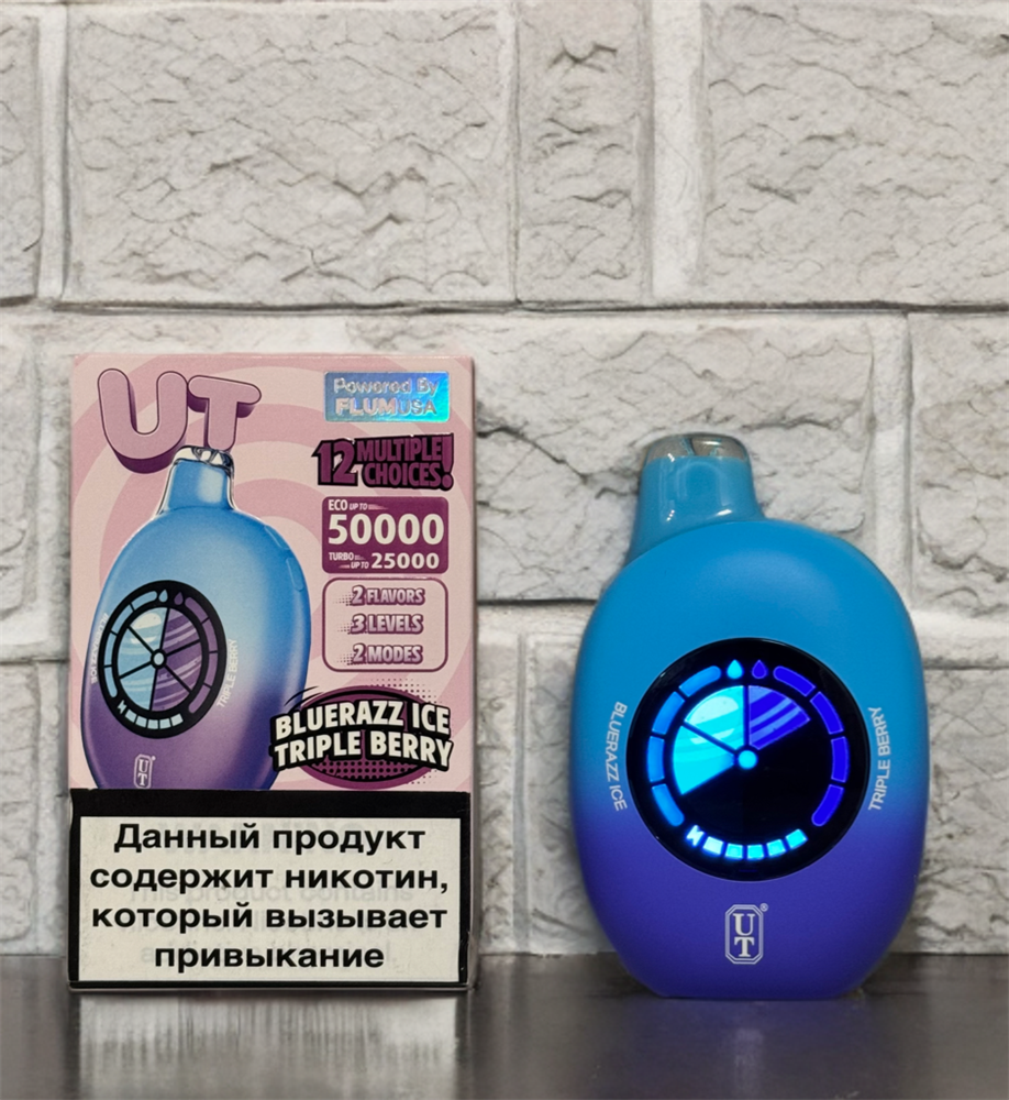 Купить одноразовые электронные сигареты Utbar by Flum USA 50000 на 50000 затяжек с подзарядкой Type-C и индикаторами оставшегося заряда и оставшейся жидкости, возможностью регулировать вкусы и совмещать их с доставкой или самовывозом из вейп шопов в Москве и доставкой по России.